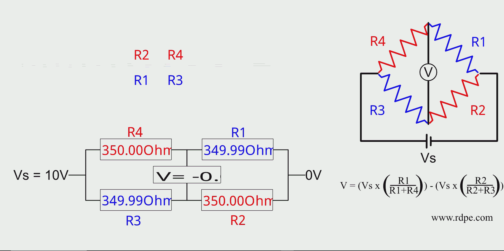 The above diagram illustrates the operation of a Strain Gage scale. The load cell can be considered to be like a diving board. A weight is placed on the left had side will cause the load cell to bend downwards. When the weight is removed, the load cell springs back up. The four strain gages are wired together in the format of a Wheatstone bridge. The output voltage of the bridge will vary in direct proportion to the load on the load cell.